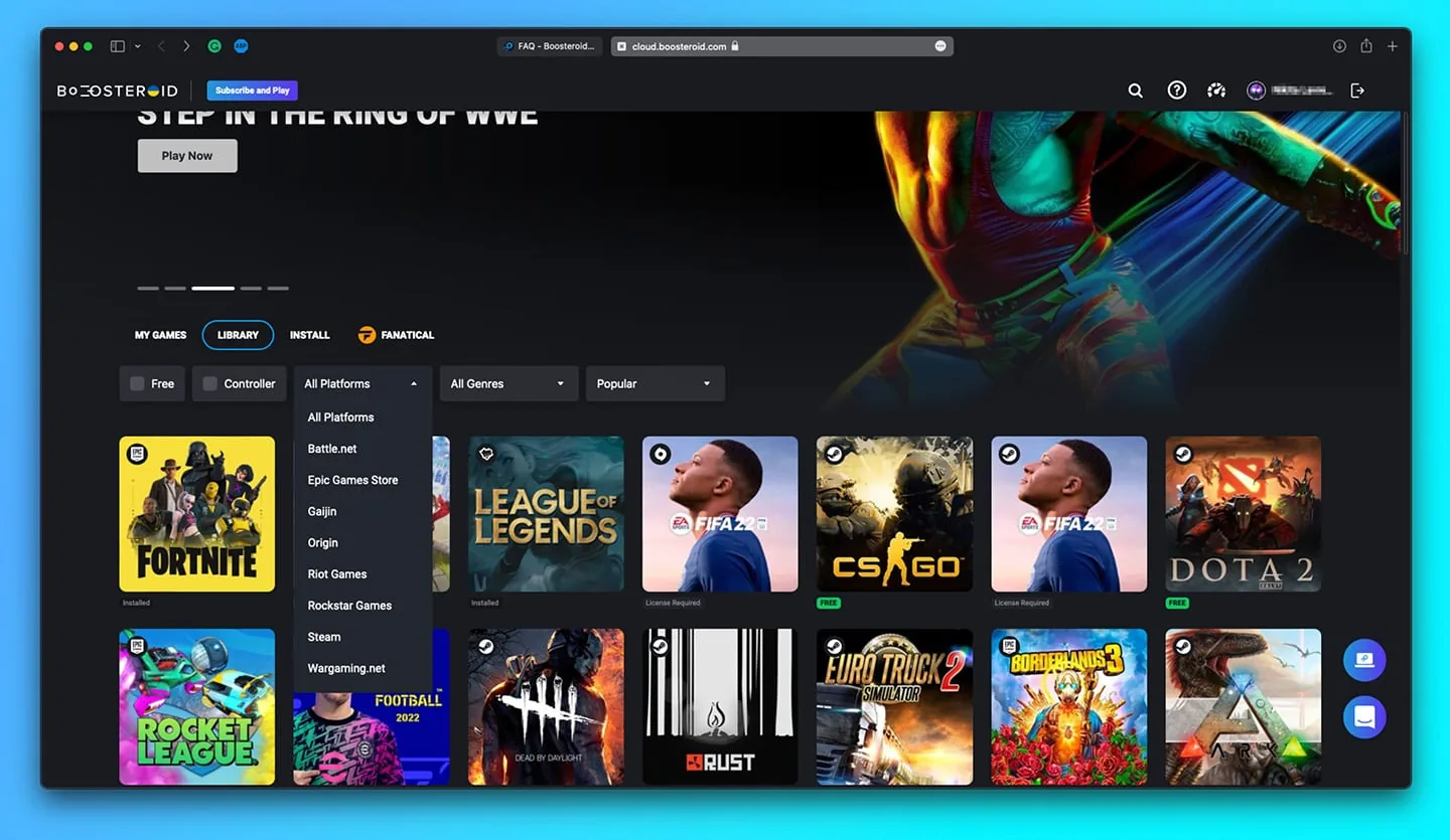 Importante: para jogar via Boosteroid, você precisa ter comprado o jogo na loja onde ele está disponível (Steam, Epic Games, etc.), exceto nos casos de jogos gratuitos (free to play), que não exigem aquisição prévia. Desse modo, a plataforma só permite o acesso aos games cuja licença já pertence ao usuário ou que sejam gratuitos.