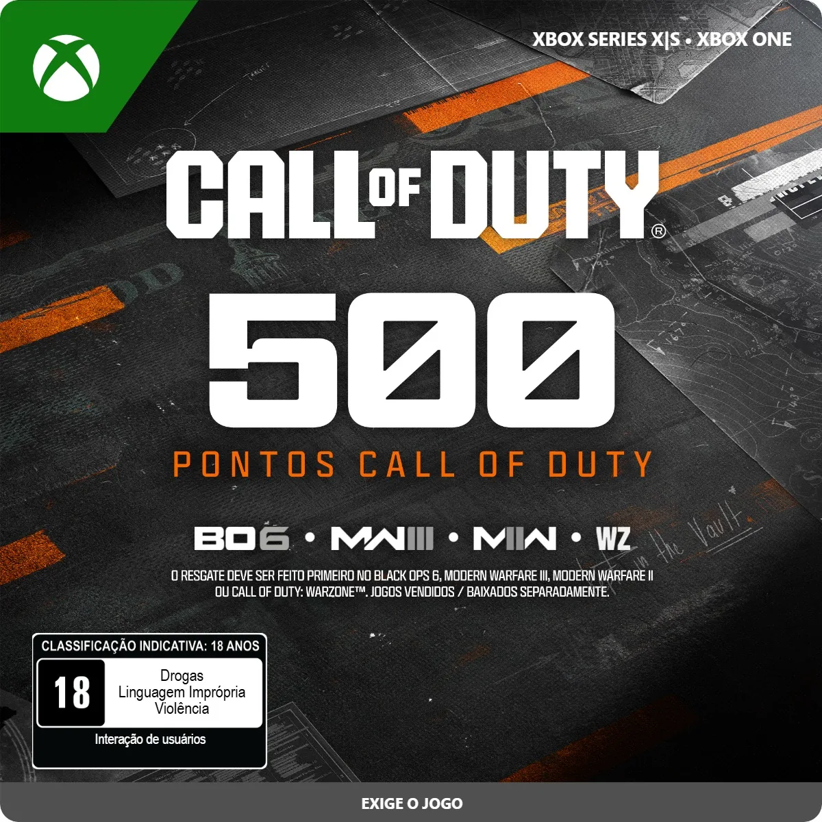 Call of Duty Points 500 adiciona 500 COD Points à sua conta para Modern Warfare III, Warzone e títulos compatíveis; assim, você compra Battle Pass, saltos de nível e pacotes da Loja (operadores, projetos de arma e mais). Além disso, o saldo segue a plataforma informada no produto (Xbox, PlayStation ou PC) e aparece no jogo após o resgate.