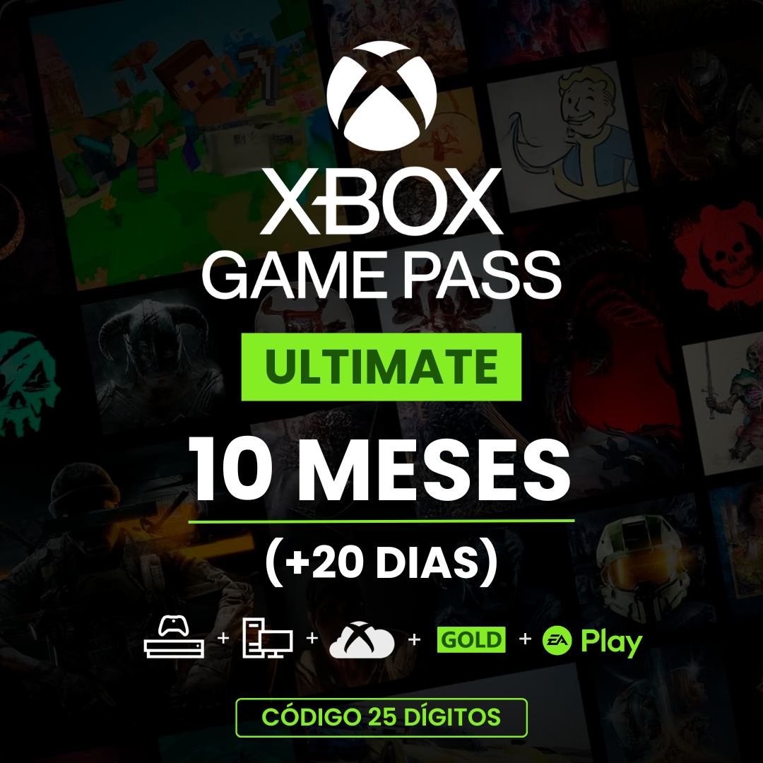 Xbox Game Pass Ultimate reúne todos os benefícios do Game Pass — incluindo o multiplayer online do Game Pass Core — em uma única assinatura. Com ele, você joga centenas de títulos no console, no PC e, ainda, por streaming via Xbox Cloud Gaming; além disso, recebe o EA Play — tudo por uma mensalidade única. O catálogo e os recursos podem variar ao longo do tempo, por região e por dispositivo. Para usar o streaming, você precisa de um controle e de um dispositivo compatível. Por fim, confira requisitos e termos em xbox.com/gamepass e ea.com/ea-play/terms.