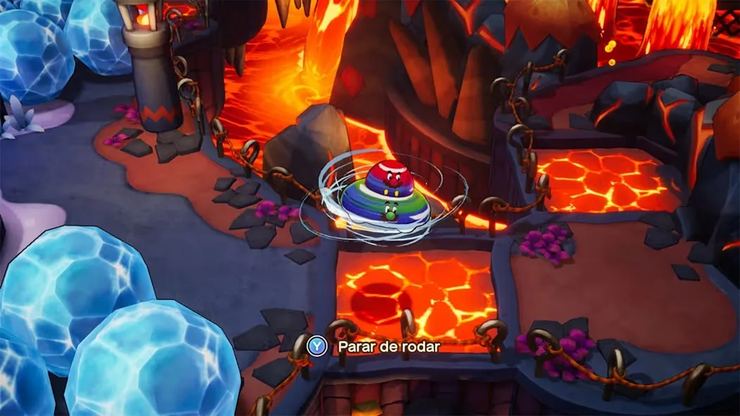 Sua base é a Shipshape Island (meio ilha, meio navio), de onde a jornada parte para “recolocar” Concordia nos eixos. No caminho, você encontra rostos novos — como Connie e Snoutlet —, mini-quebra-cabeças, chefes marcantes e trechos de plataforma que pedem precisão.
