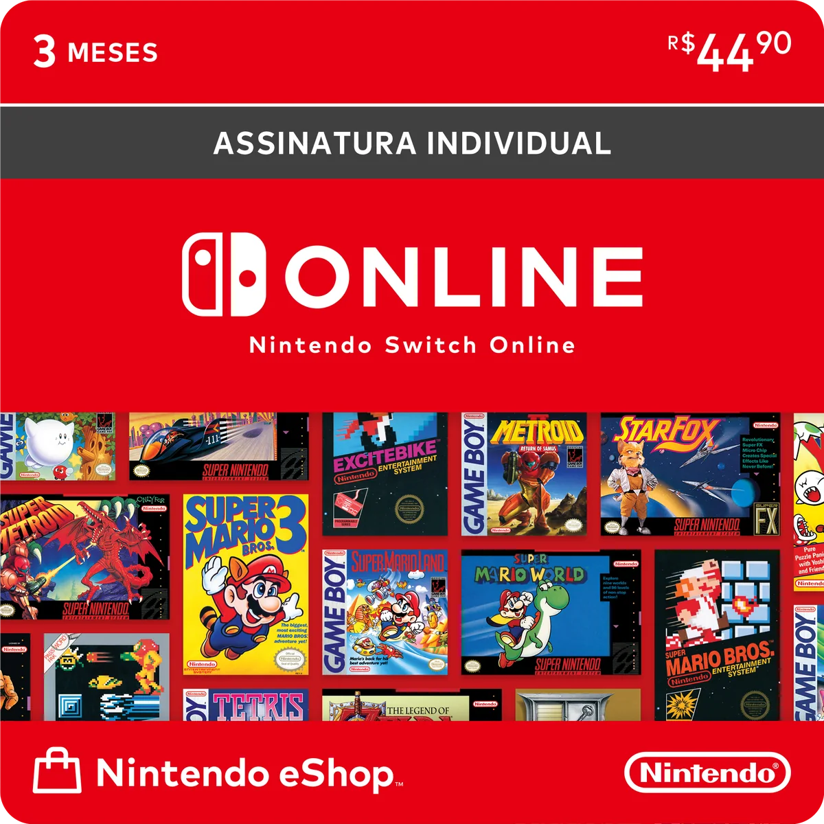 Esta é uma assinatura individual de 3 meses (90 dias) para o Nintendo Switch Online.