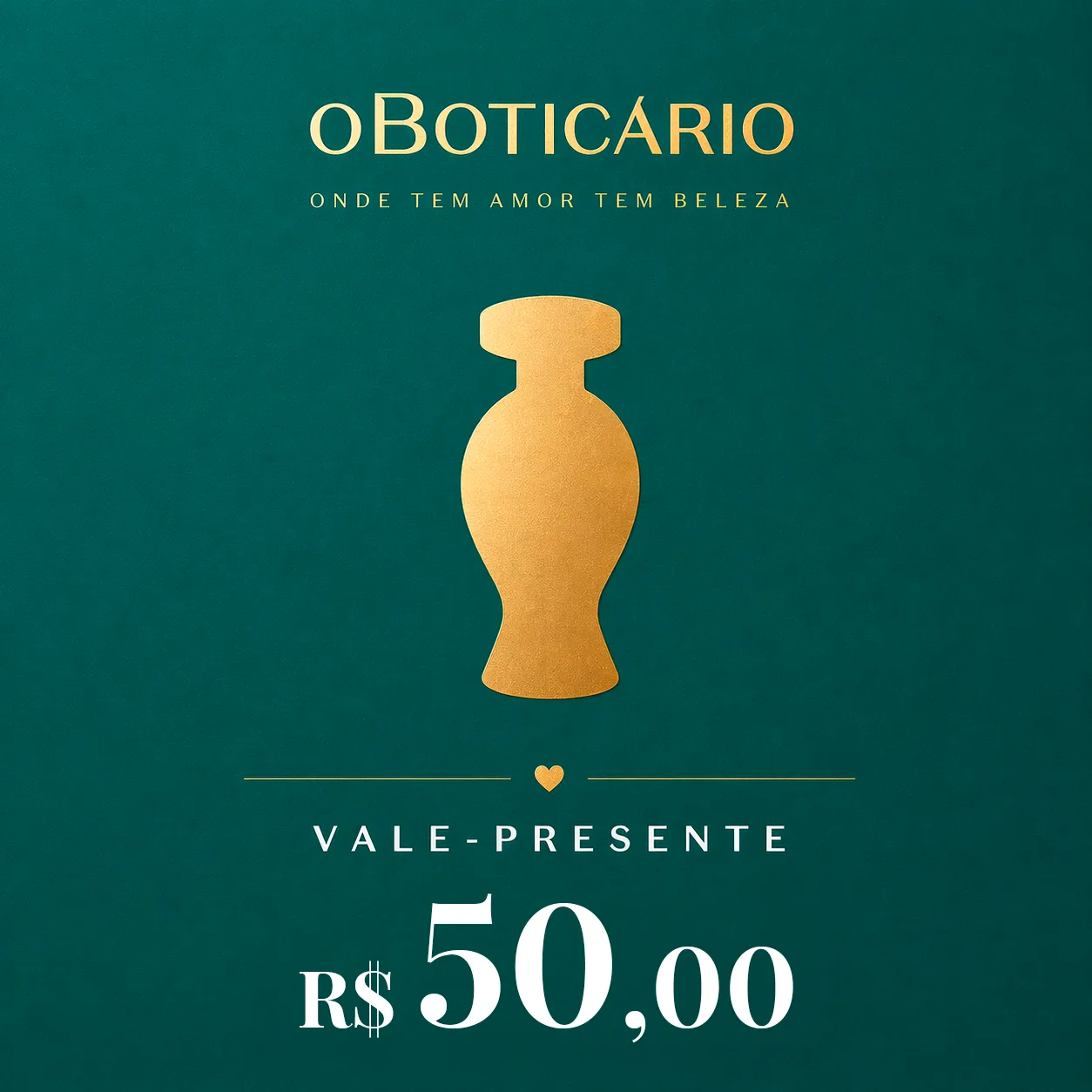 O Vale Presente O Boticário Virtual R$50,00 é um crédito digital perfeito para presentear. Após a compra, o envio é feito por e-mail. Para ativar, basta inserir o código na conta O Boticário do presenteado.